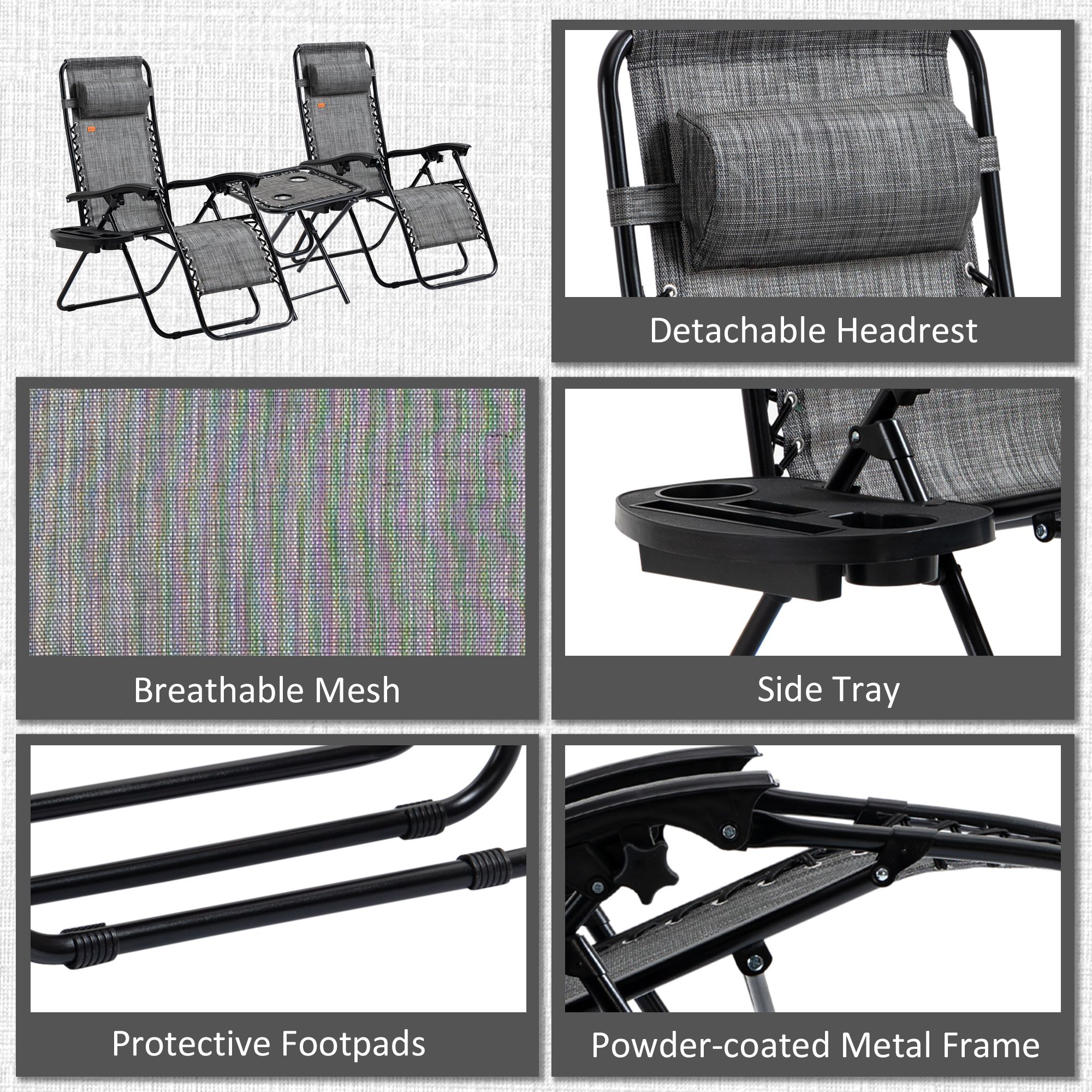 Outsunny Zero Gravity Chair Set with Side Table, Folding Reclining Chair with Cupholders & Pillows, Adjustable Lounge Chair for Pool, Backyard, Lawn Outsunny Zero Gravity Chair Set with Side Table, Folding Reclining Chair with Cupholders & Pillows, Adjustable Lounge Chair for Pool, Backyard, Lawn Outsunny Zero Gravity Chair Set with Side Table, Folding Reclining Chair with Cupholders & Pillows, Adjustable Lounge Chair for Pool, Backyard, Lawn