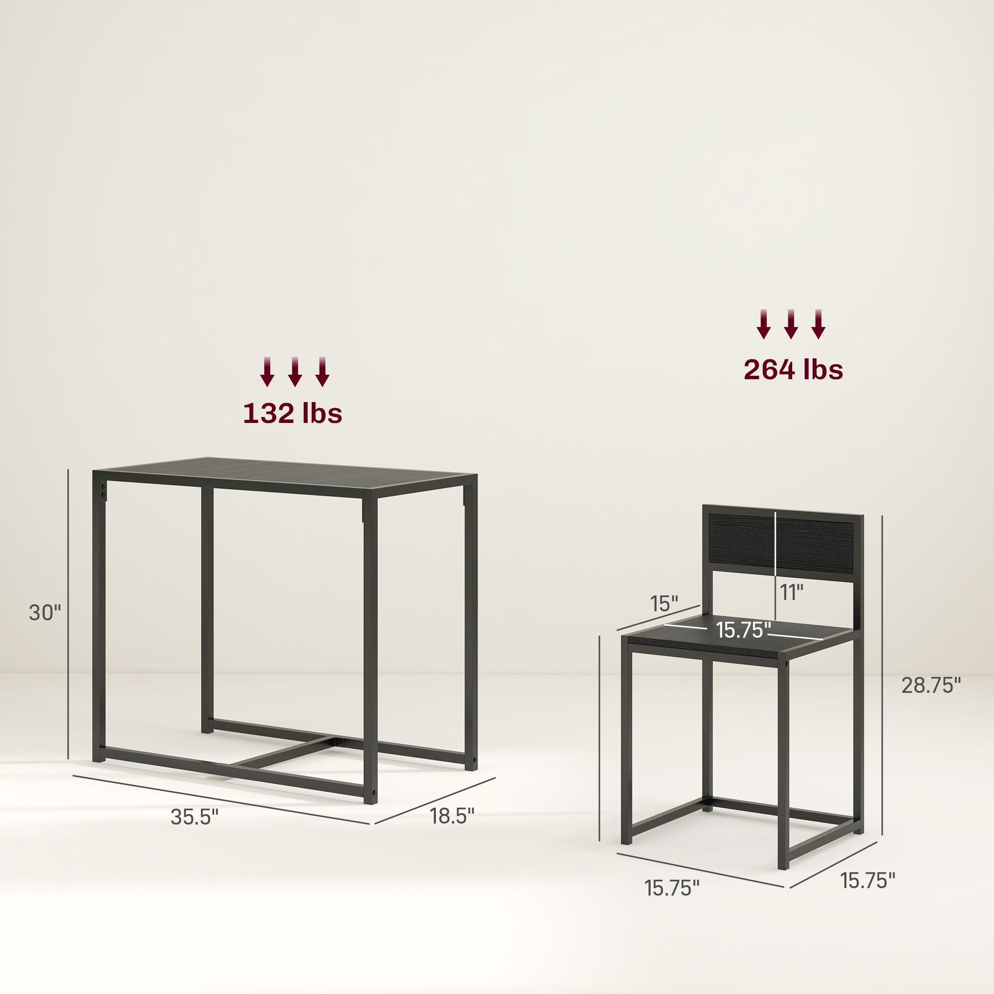 1.- Eat Together, Happy Together: Share good food and laughter with family and friends! This functional dining table set includes a dining table and two dining stools. The 35.5" L x 18.5" surface fits 2 people for quick workday snacks and morning coffee.