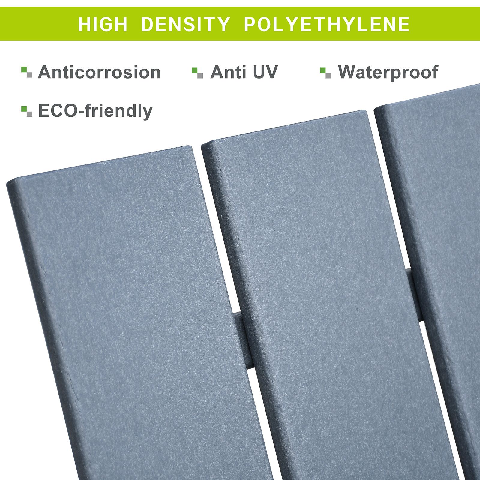 1.High-Density Material: The Adirondack chair is made of HDPE material. NO-Crack and NO-Fade and more environmentally friendly than PS and PC material.