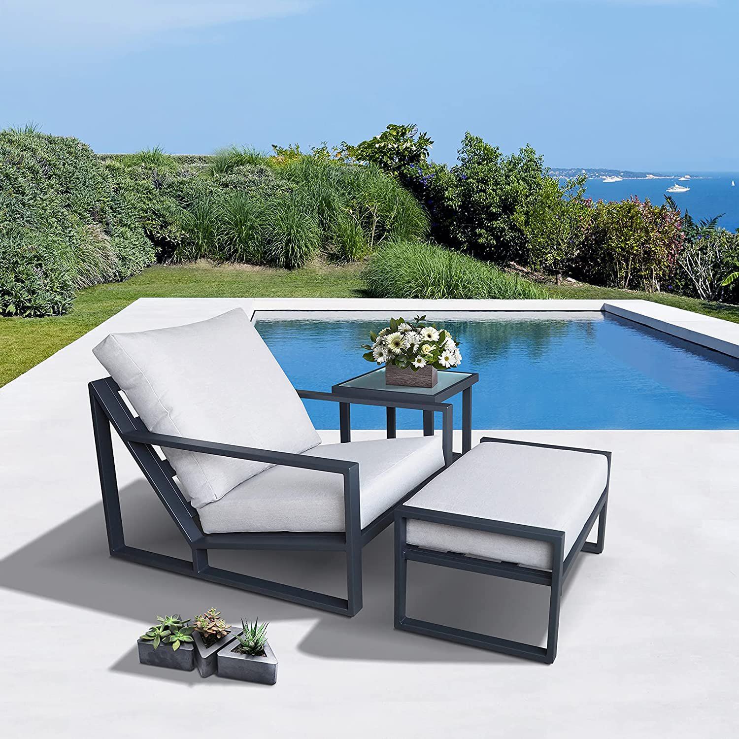 2.2. Modern Fashion Design : Smooth lines, aluminum chaise lounge armchairs with ottoman, and a sleek profile enhance the modern look of outdoor sofa set.