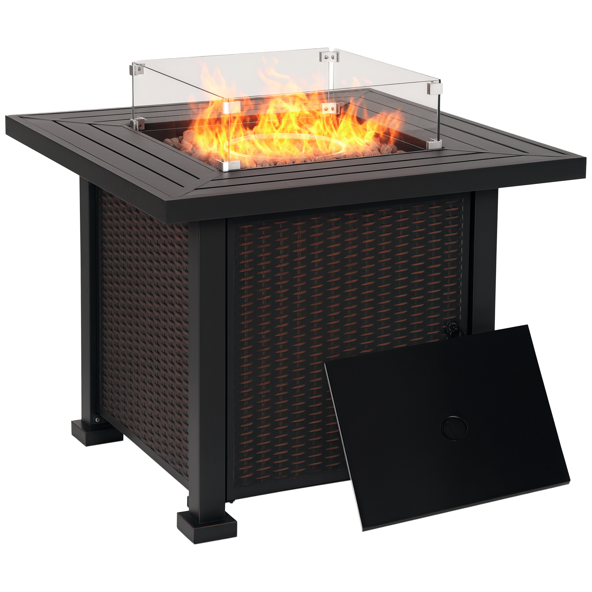 Enjoy the ultimate backyard ambiance year-round with this cozy and functional outdoor furniture from Outsunny that has both a fire pit and dining table together. It features a classic wicker design base that cleverly conceals the propane tank inside. Complete with a 50,000 BTU CSA-certified burner, you can enjoy all the pleasures of a charming flame without worrying about messy ashes. Whether it's on a porch, patio, or in your garden, our patio fire pit table makes a classy addition to your home.