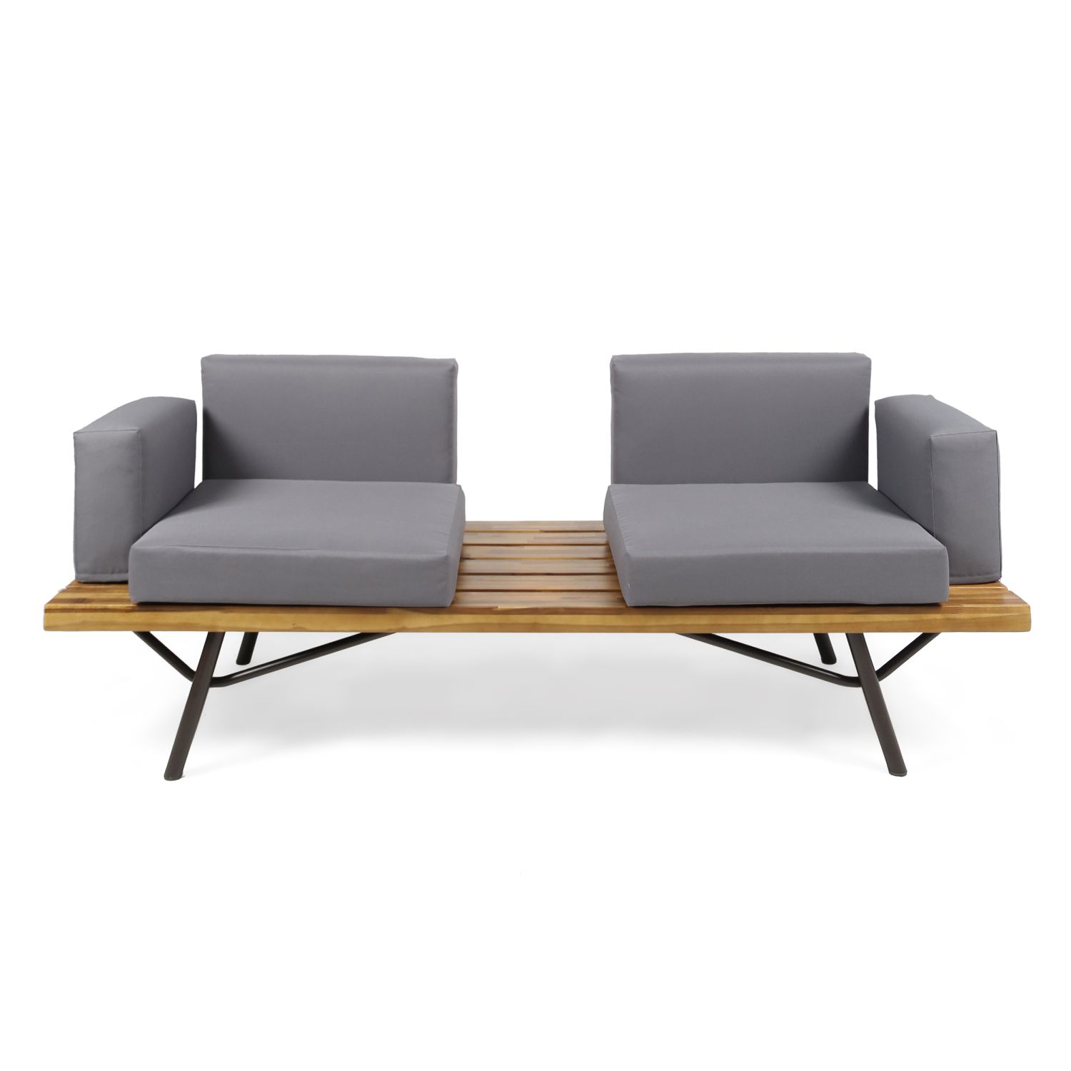 Outdoor Acacia Wood 2 Seater Sofa with Metal Legs for Garden Patio